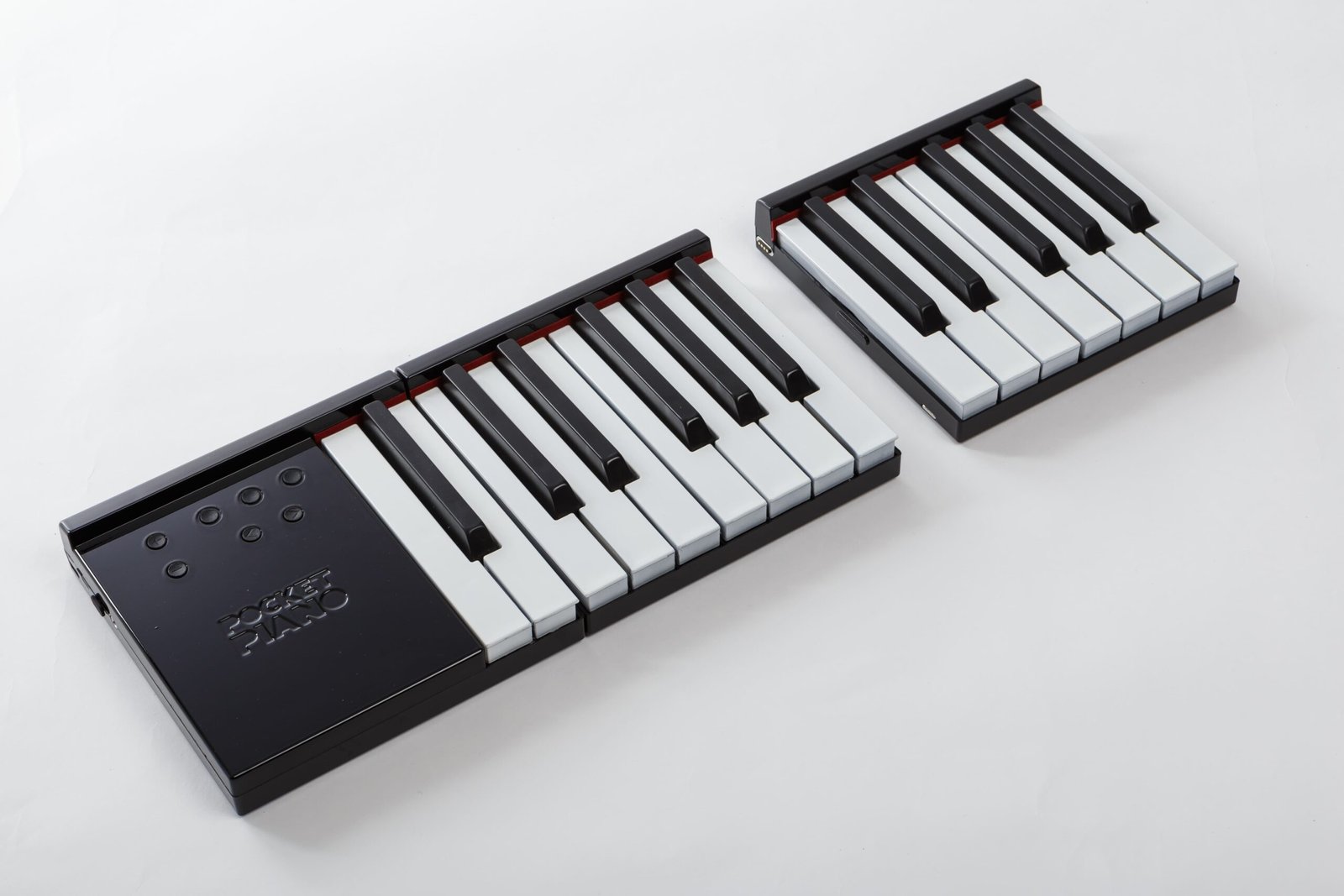 Pocket Piano is a complete professional instrument designed for musicians that have all the range and expression of a real piano in a format designed for the movement.