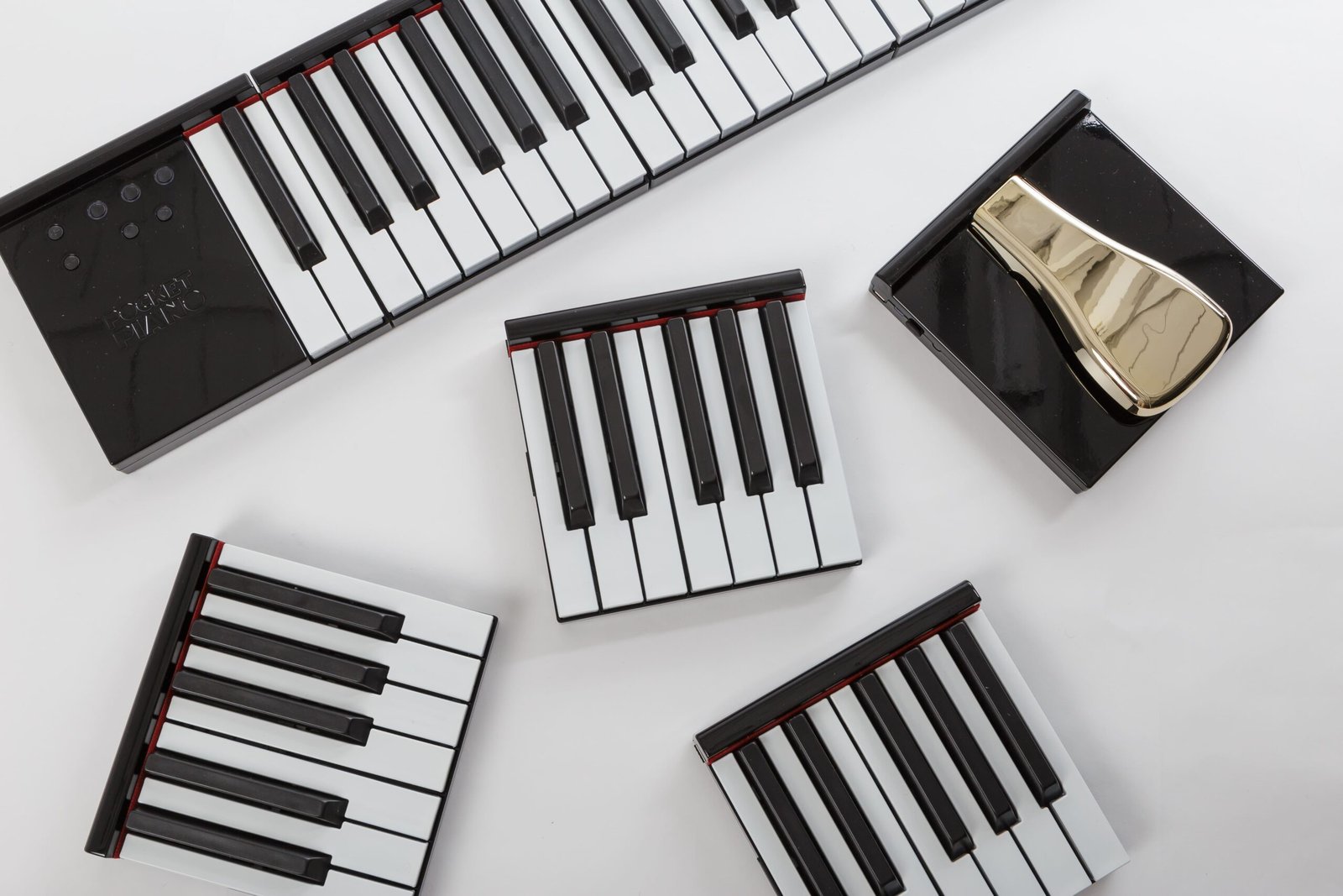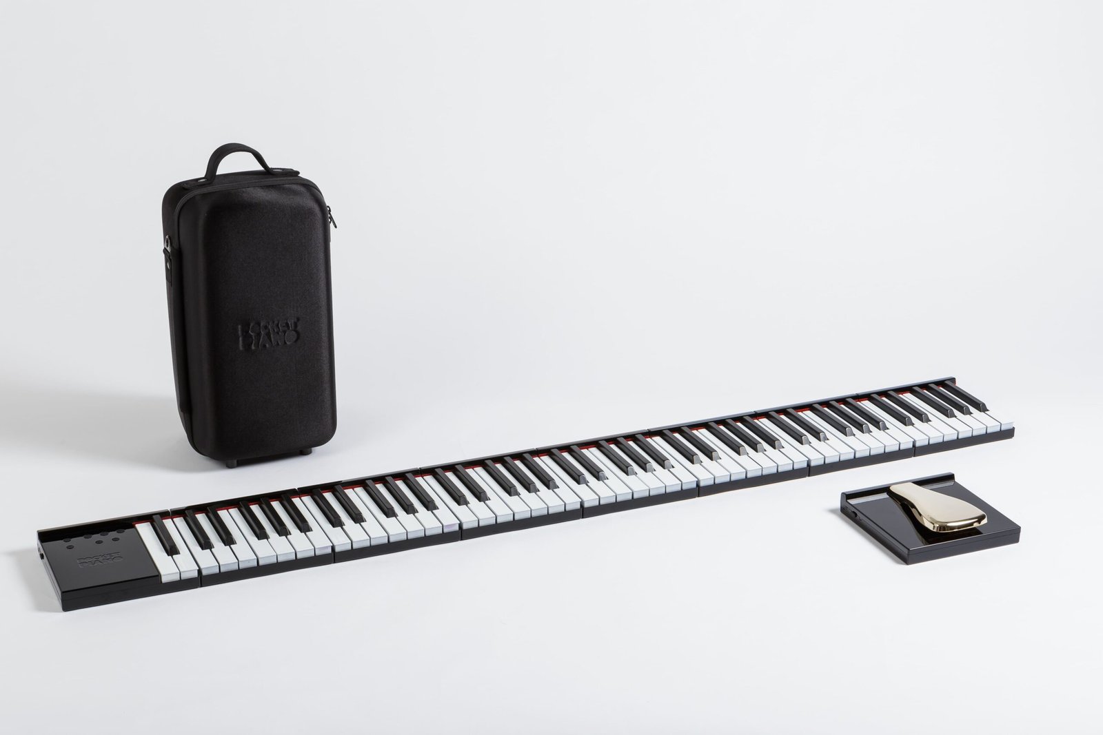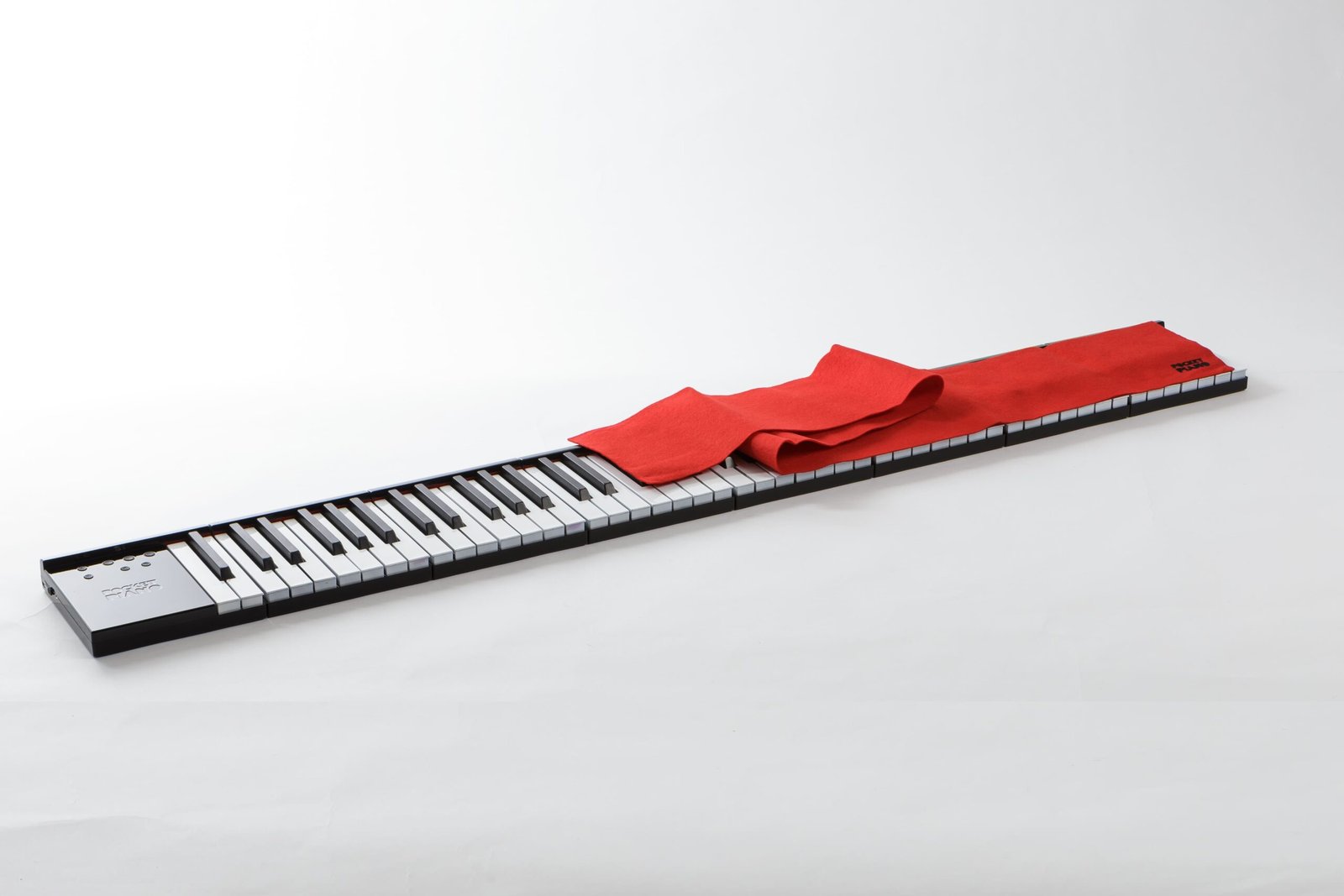 Pocket Piano weighs approximately 6 kg and folds into a compact format designed to fit in a backpack.